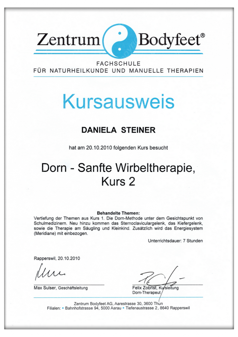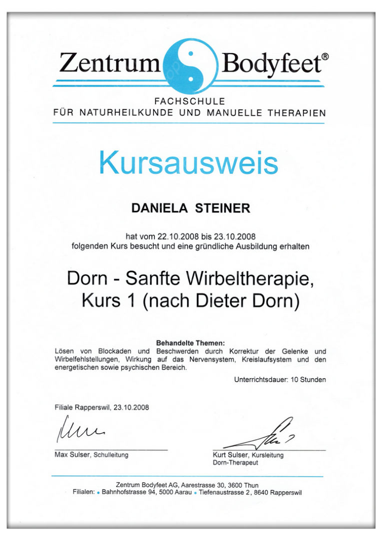 -Dorn Sanfte Wirbel Therapie, Okt 2008 und 2010