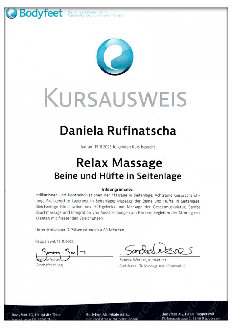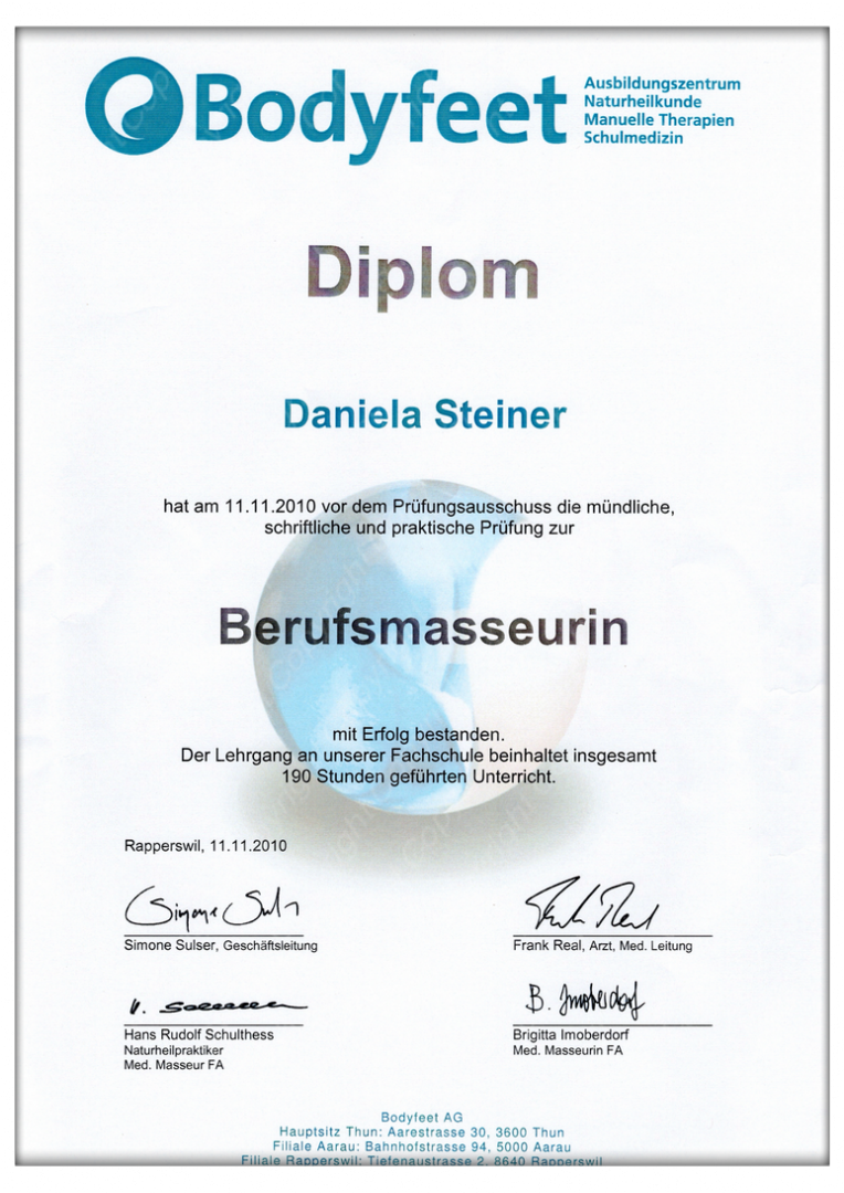 -Berufsmasseurin mit eidgenössischem Fachausweis, 2008-2010