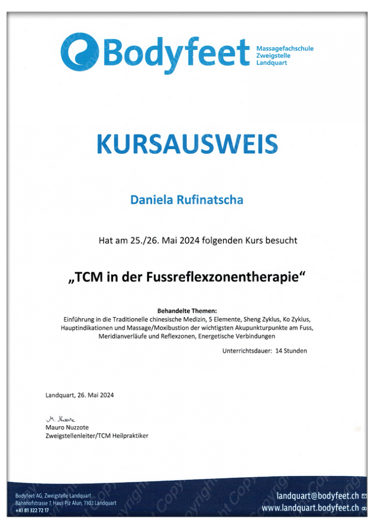 -TCM (Traditionelle Chinesische Medizin) in der Fussreflexzonen Therapie, Mai 2024